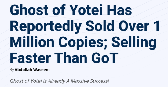 根据tech4gamers的报道,索尼最新的PS5独占游戏《羊蹄山之魂》在首日销量上已突破100万套,销售速度甚至超过了前作《对马岛之魂》。业内人士Millieamand透露,《羊蹄山之魂》首日卖出了130万套,而《对马岛之魂》当年的首日销量为125万套,这意味着新作在起步阶段已超越前作。